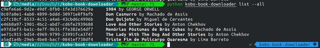 - Now we can start using kobo-book-downloader, the first time it will ask for your Kobo credentials.